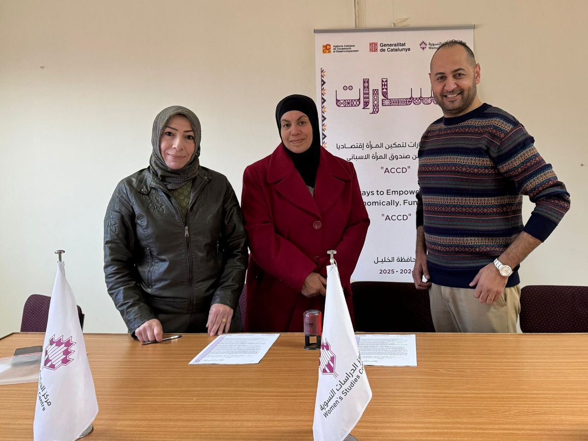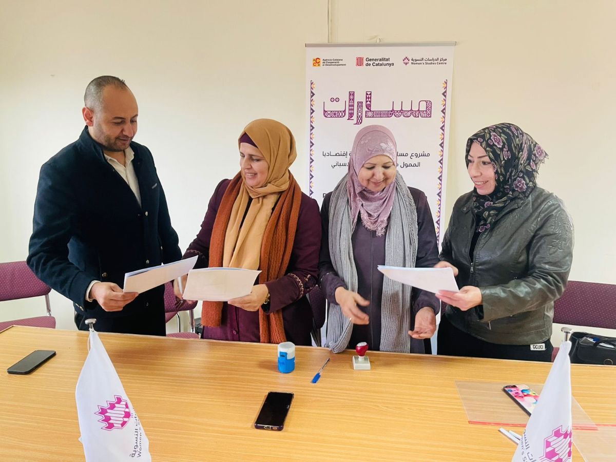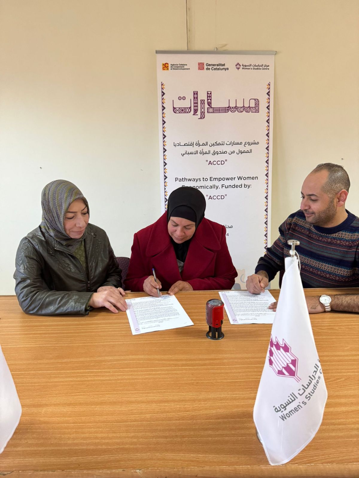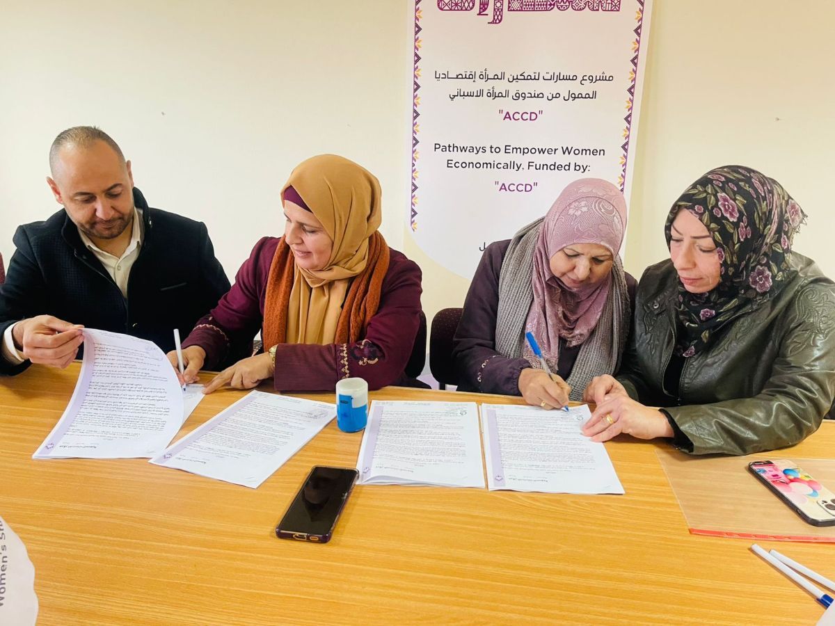 جانب من توقيع مذكرات التفاهم مع المؤسسات الأربعة المستهدفة ضمن مشروع (مسارات ) لتمكين المرأة إقتصاديا في محافظة الخليل وهم: